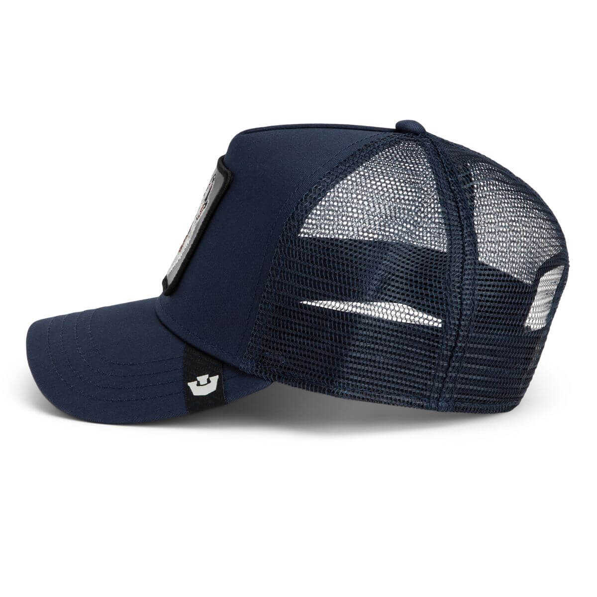 Navy design: Mélykék pamutvászon előlap és napellenző, amelyhez színben harmonizáló, jól szellőző hálós hátoldal társul.